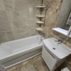 Baie mobilata si utilata cu masina de spalat rufe cu uscator.