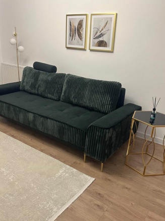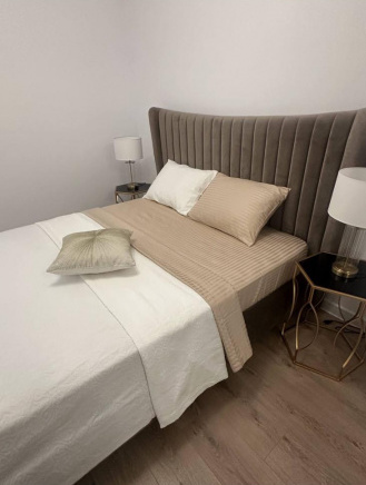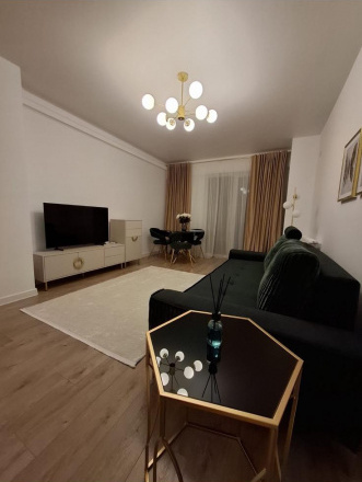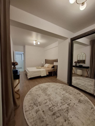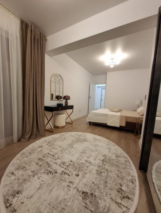 Dispune de un living luminos echipat cu o canapea extensibila, TV, AC, dormitor cu pat matrimonial, dressing incapator, 1 baie.