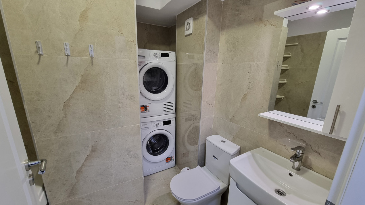 Baie mobila ta si utilata cu masina de spalat rufe si uscator.