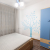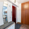 Cel de-al doilea hol este dotat cu aer conditionat si debara pentru depozitare, oferind acces catre doua dormitoare si doua bai. Dormitorul matrimonial, cu o suprafata de 11,56 mp, este mobilat cu pat si comoda si are acces direct catre al doilea balcon. Al doilea dormitor, de 9,37 mp, este ideal atat pentru copil, cat si pentru birou sau camera de oaspeti.
