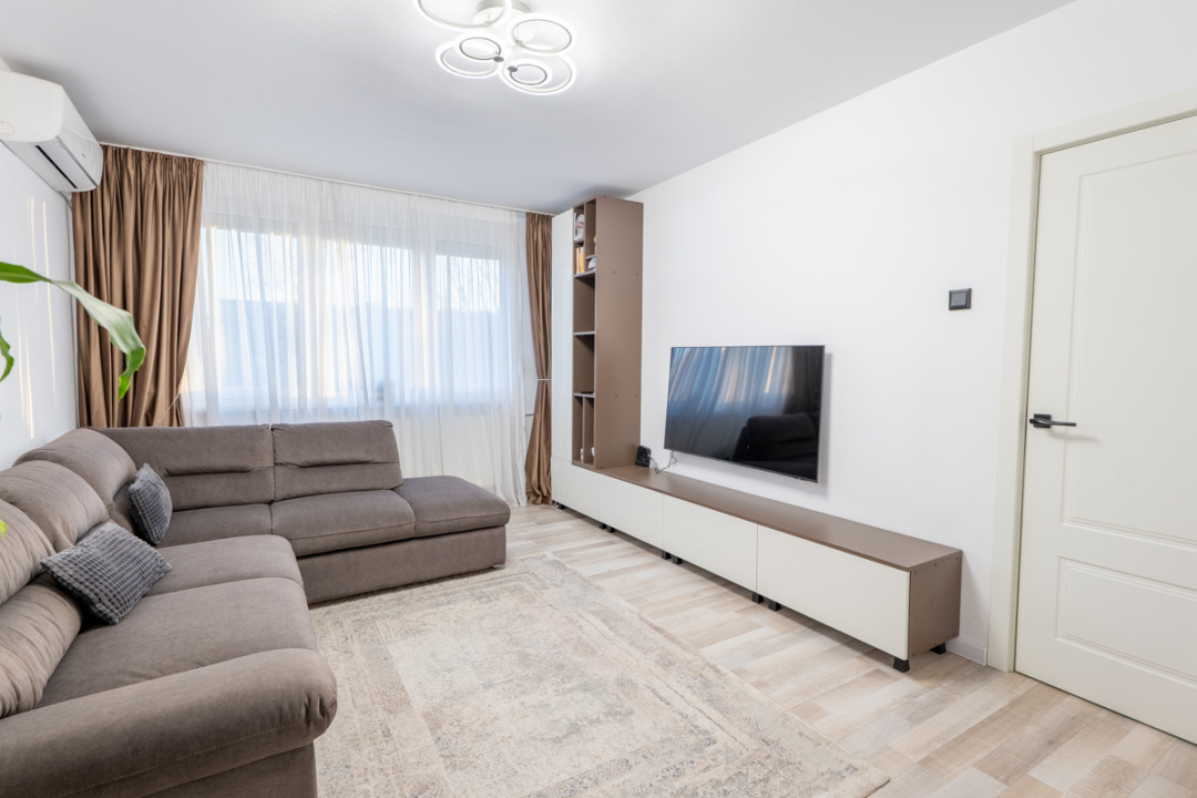 ✔️ Living spatios, dotat cu aer conditionat, canapea extensibila si comoda TV