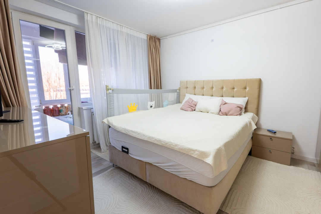 ✔️ Dormitor matrimonial de 13 mp, cu dressing spatios si acces direct catre balconul inchis
